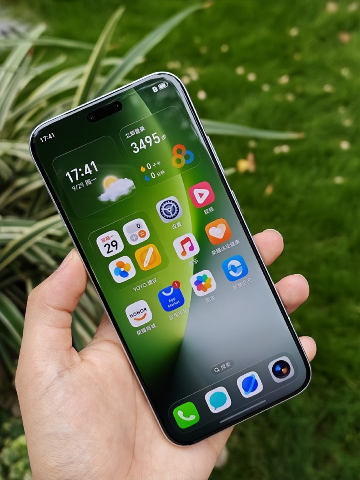 外观方面,今年很多厂商的旗舰手机,全系都是采用直屏设计,而荣耀和上一代一样,标准版采用直屏,Pro版本采用曲面屏,这款Magic8Pro正面是等深微曲面屏设计,还是居中双打孔, 6.71 英寸大小,这种微曲面,不会像大曲率屏那样误触频发,算是手感和实用的平衡点。